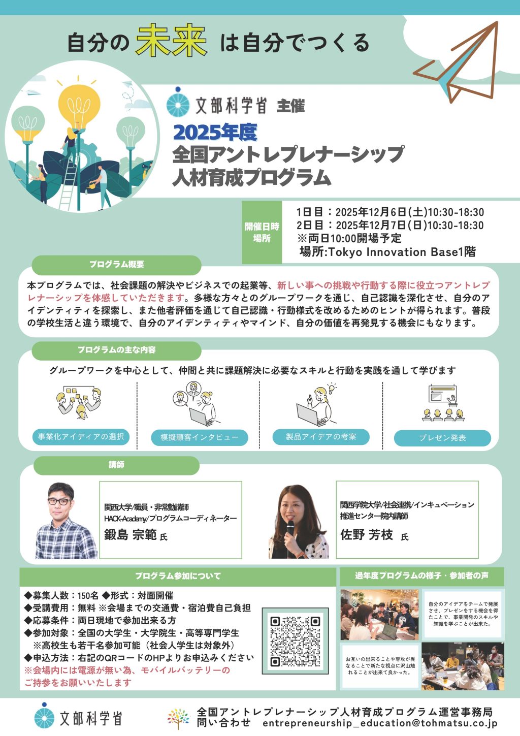 【プログラム詳細・参加申込ホームページ】https://entrepreneurship-education.mext.go.jp/