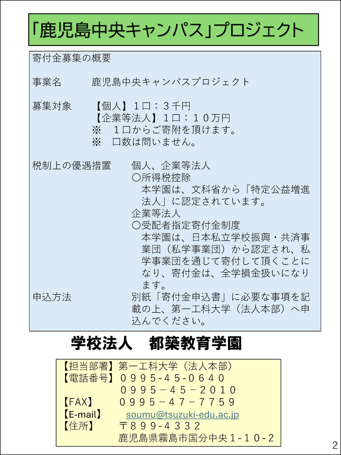 この度、都築教育学園は、教育環境設備の充実のため寄付金の募集を開始させていただきます。