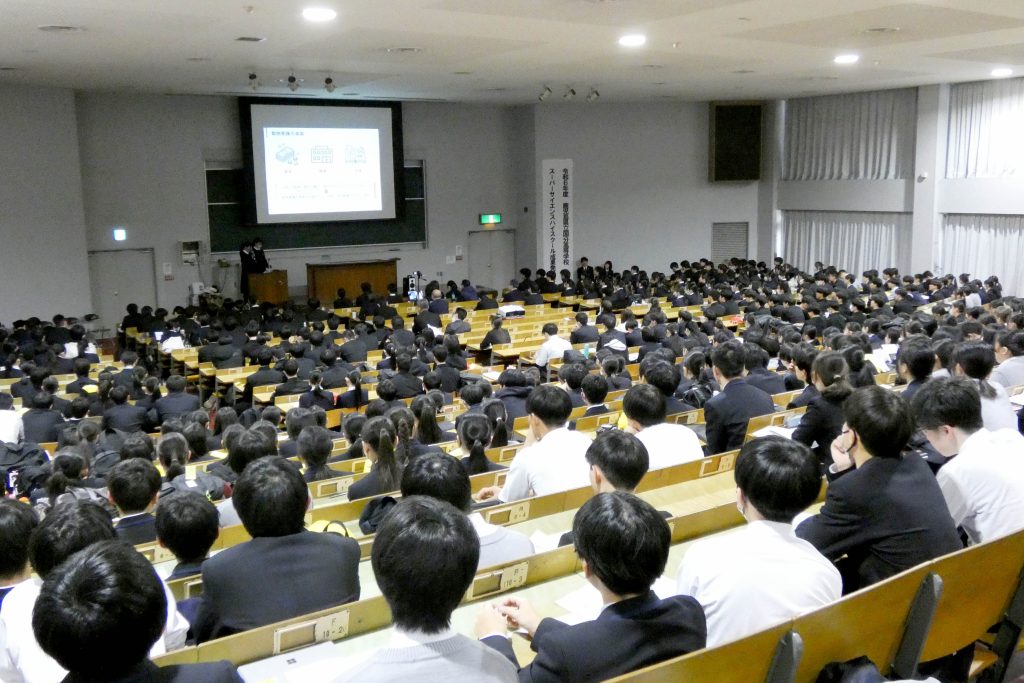 令和7年1月31日(金)、本学620講義室にて令和6年度鹿児島県立国分高等学校SSH成果発表会が開催され、国分高校1年生・2年生、県内外関係者約700名が参加しました。本学からは社会・地域連携センター長の本田泰寛教授が開会行事にて挨拶をおこない、工学部長の満丸浩教授と共通教育センターの森園由香講師が審査員として協力しました。