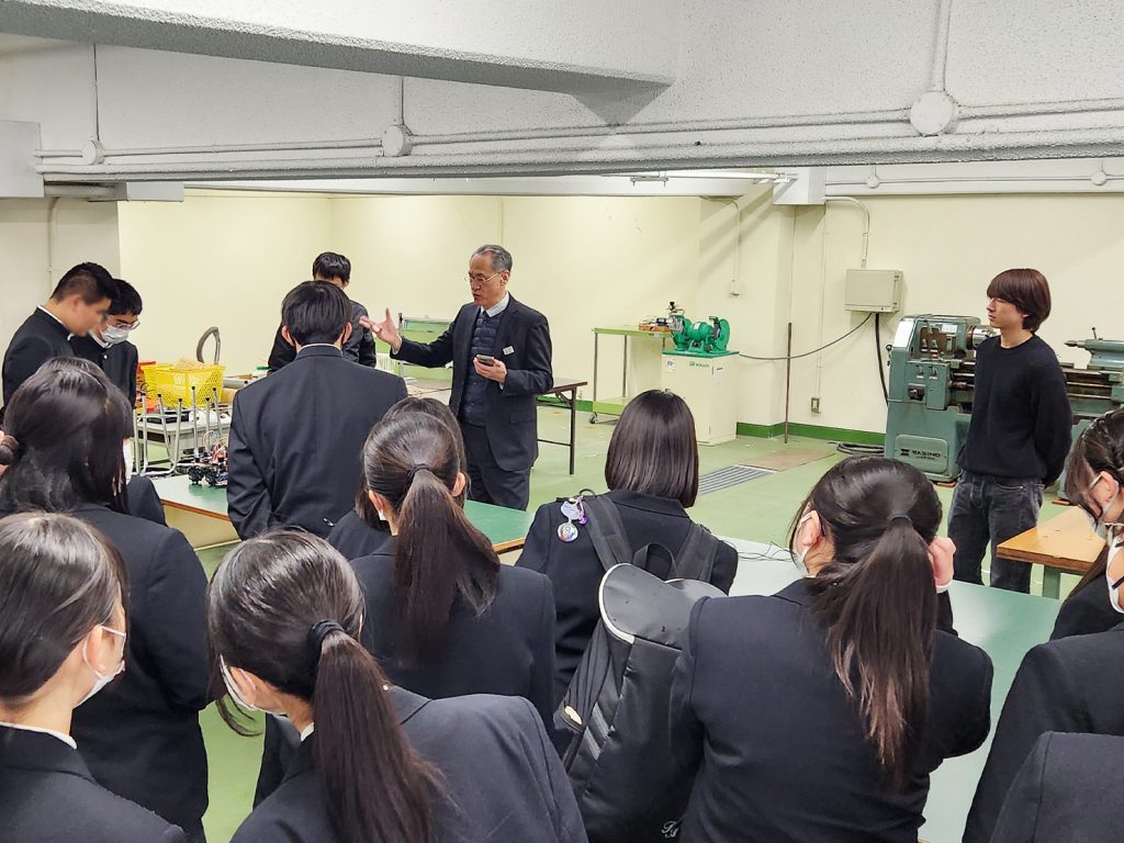 本学のものづくりの知識を見聞きされ感嘆の声をあげる生徒さん達の姿は、本学職員にとって今後の教育活動の励みとなりました。