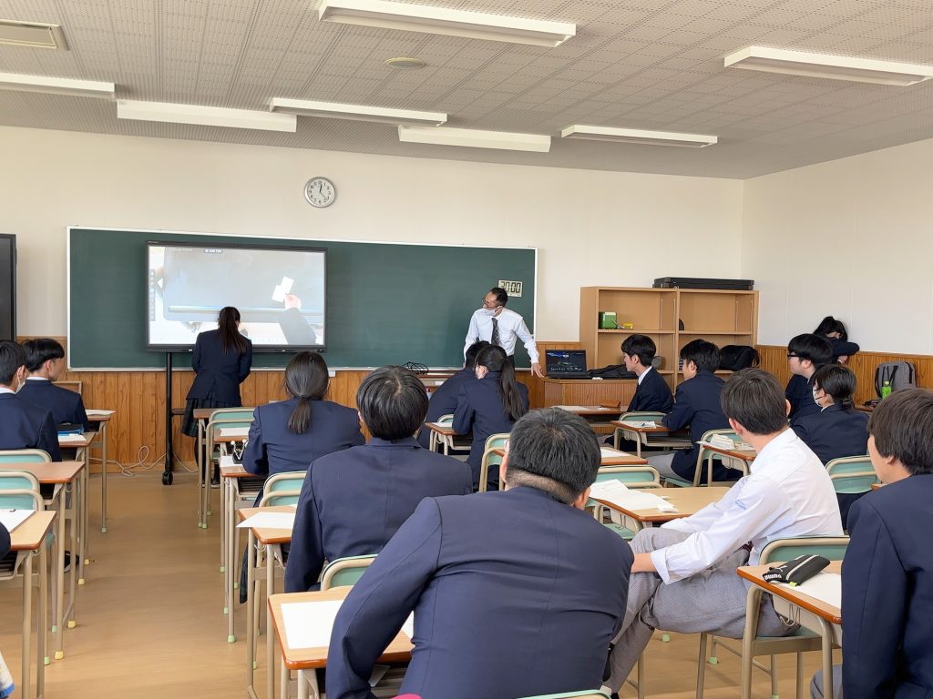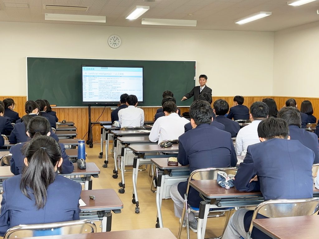 1月30日(木)、情報・AI・データサイエンス学科の山田教授はAI、髙橋准教授はデータサイエンスを題材として喜界高等学校で出前授業を実施しました。