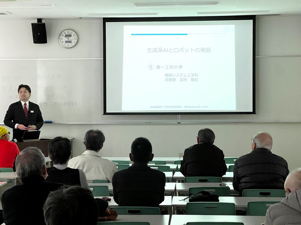 4月5日(土)10:00より公開講座「生成系AIとロボットの発話」が開催され、機械システム工学科の武田隆宏准教授が講師を務めました。