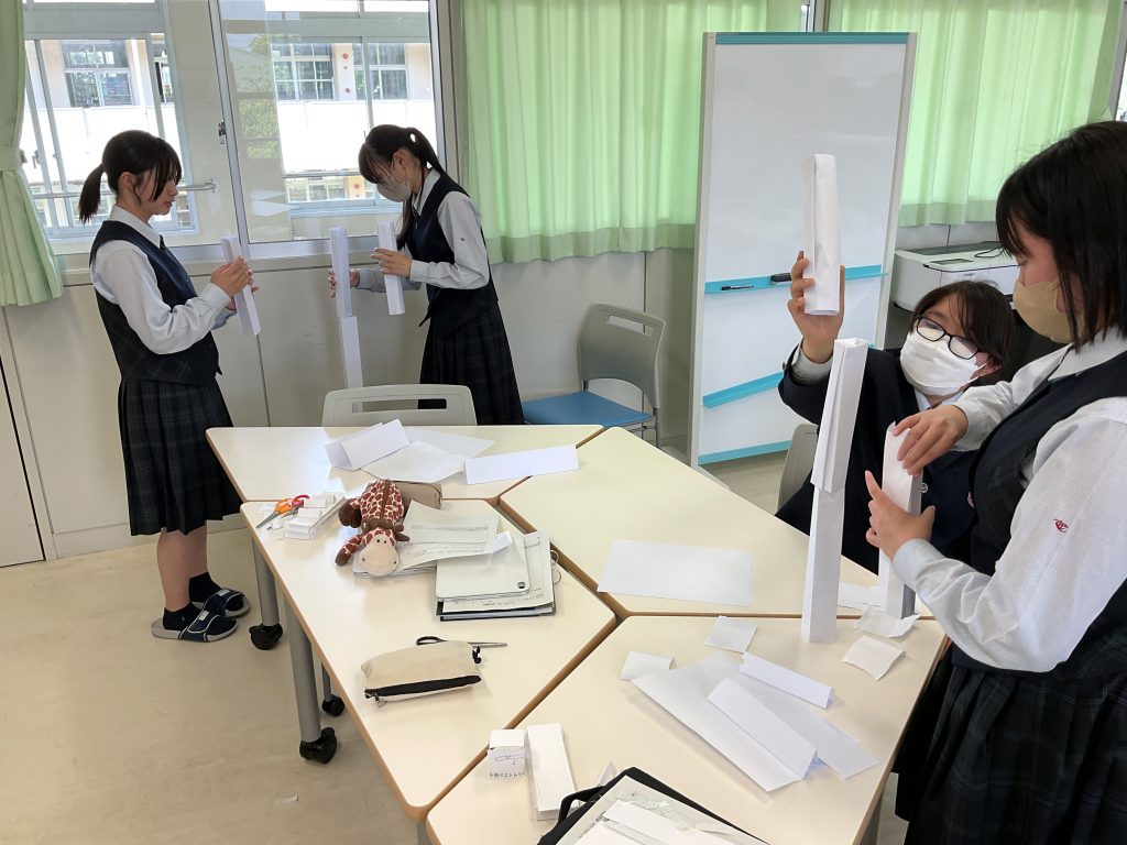ミライデザイン科は、様々なデジタル技術を駆使してビジネスに新たな価値を提供できるデジタル人材の育成を目的として、令和6年4月開設された新しい学科です。「デザイン思考とアイデア発想法」をテーマに講演とワークショップの2時間の授業でした。「たくさん想像しながら、試してみてどうなるのか、すごくワクワクして授業を受けることができました」との感想がありました。