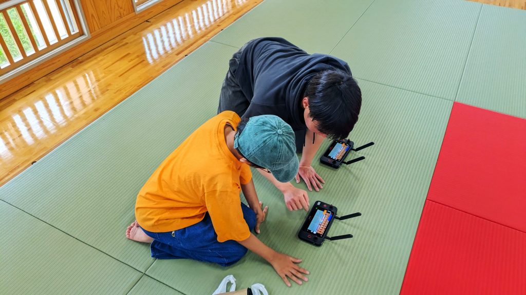 また、小さなトイドローンを使った輪っかくぐりでは、皆さんすぐに操縦にも慣れて上手に飛ばして楽しんでいただけたようでした。