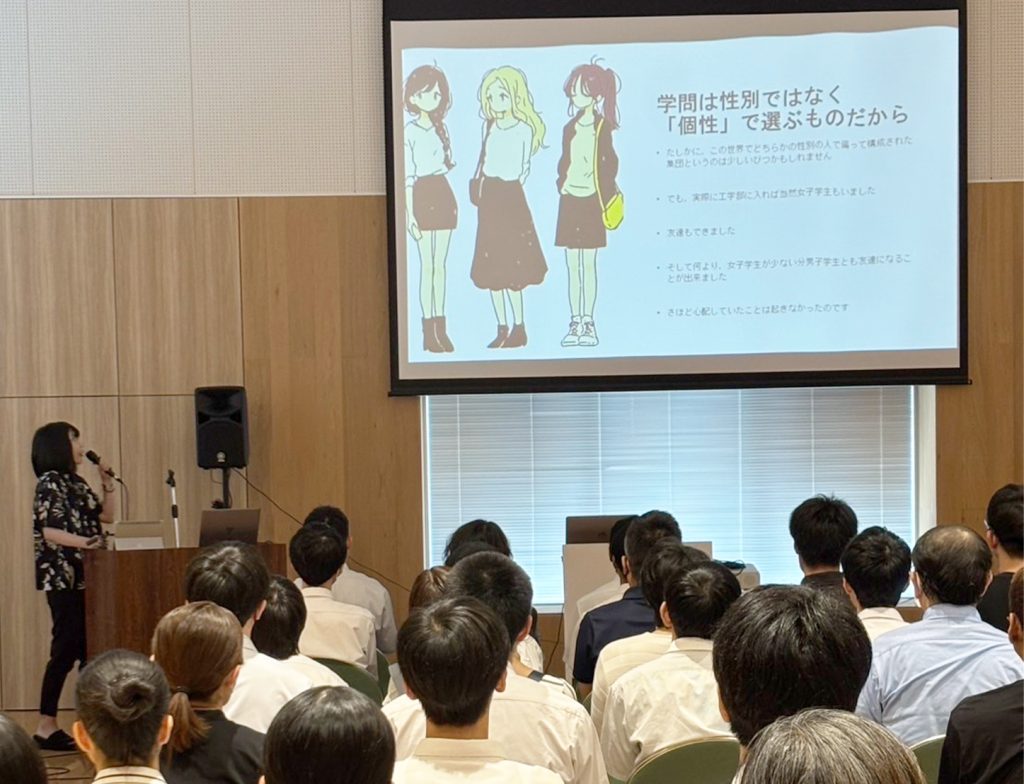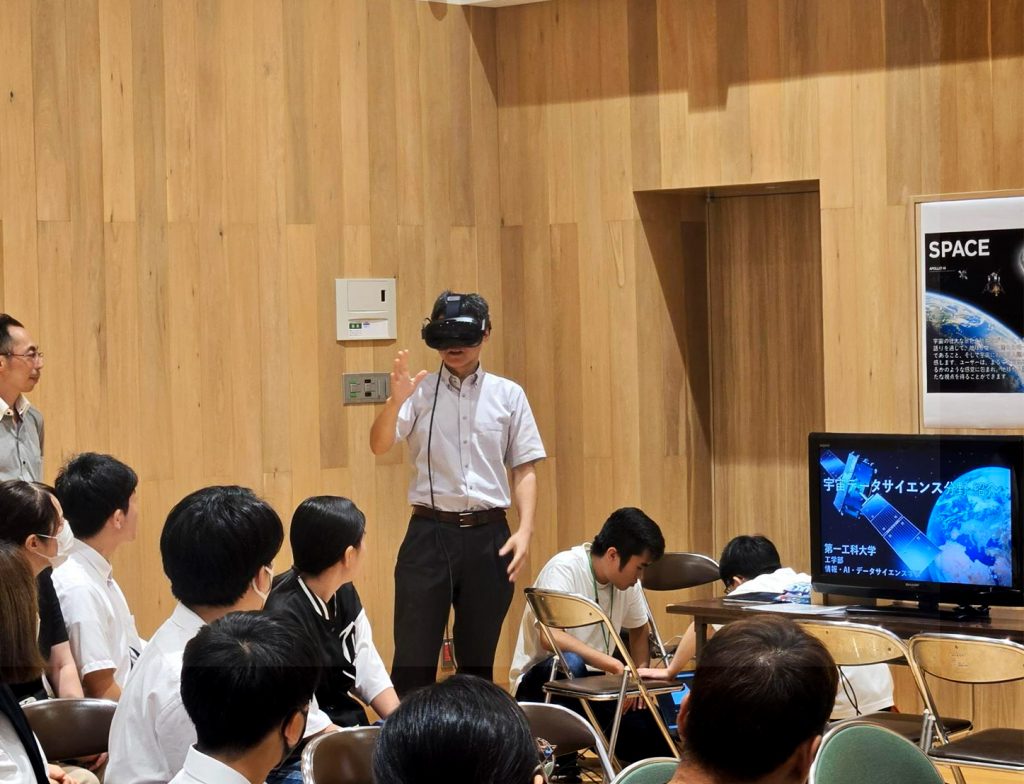 鹿児島中央キャンパスでは、まず午前の第一部で本学上野キャンパス情報・AI・データサイエンス学科古宮望美専任講師による『工学×●● ~●●に入る言葉は何だろう?~』のセミナーを聴講頂き、その後は情報・AI・データサイエンス学科各分野の体験ブースを見学いただきました。