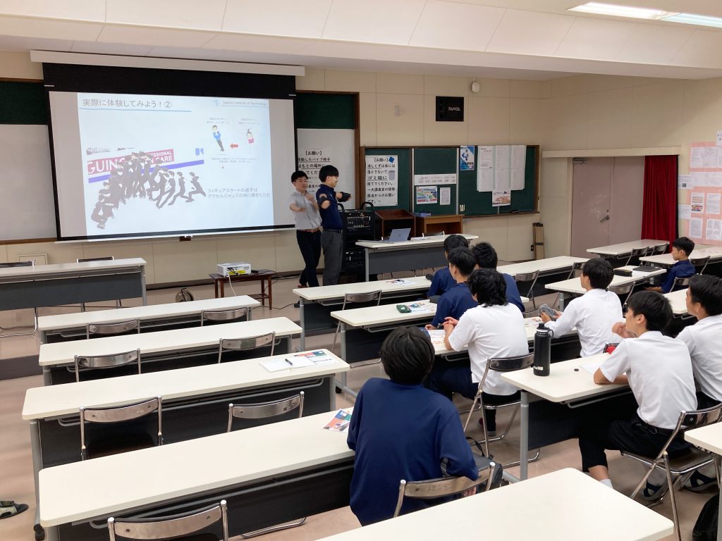 7月10日(木)、情報・AI・データサイエンス学科の中島将武助教が修学館中学校、高校にて中高生30名を対象に「スポーツ科学体験」の出前授業を行いました。