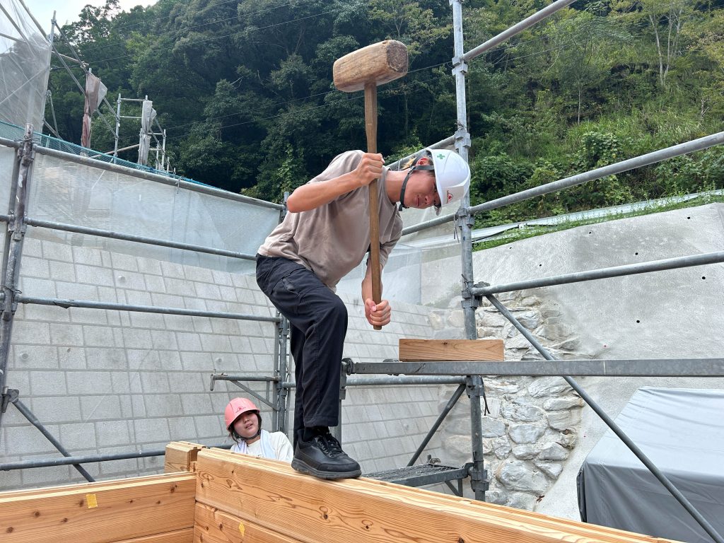ログハウス建設の現場を企業のインターンシップで体験しました