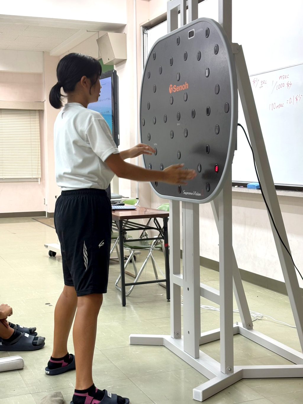 また、最新のビジョントレーニング機器をお持ちして、1、2年生で競ったりするなど大いに盛り上がりました。