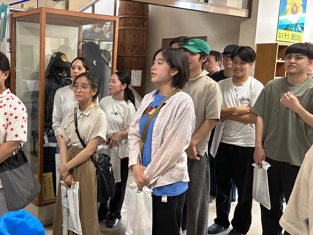 この入来麓において、武家町の景観の維持による持続可能な景観まちづくりを進める入来花水木会は、2024年に鹿児島県景観大賞優秀賞を受賞していますが、本学共通教育センターの西嶋啓一郎教授は3年前から鹿児島県景観アドバイザーとして入来麓の景観まちづくりの研究を行っていることから、大学の地域貢献活動の一環とし建築デザイン学科の学生が参加したものです。