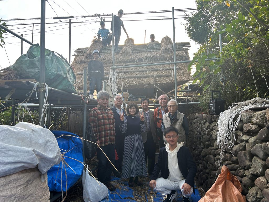 この事業は鹿児島県の景観アドバイザーの西嶋教授と建築デザイン学科3年生による景観まちづくり事業の一環で、鎌倉時代からの武家町により伝統建造物群保存地区の指定を受けている入来麓での茅葺き屋根葺き替えによる持続可能なまちづくりを主題としたものでした。