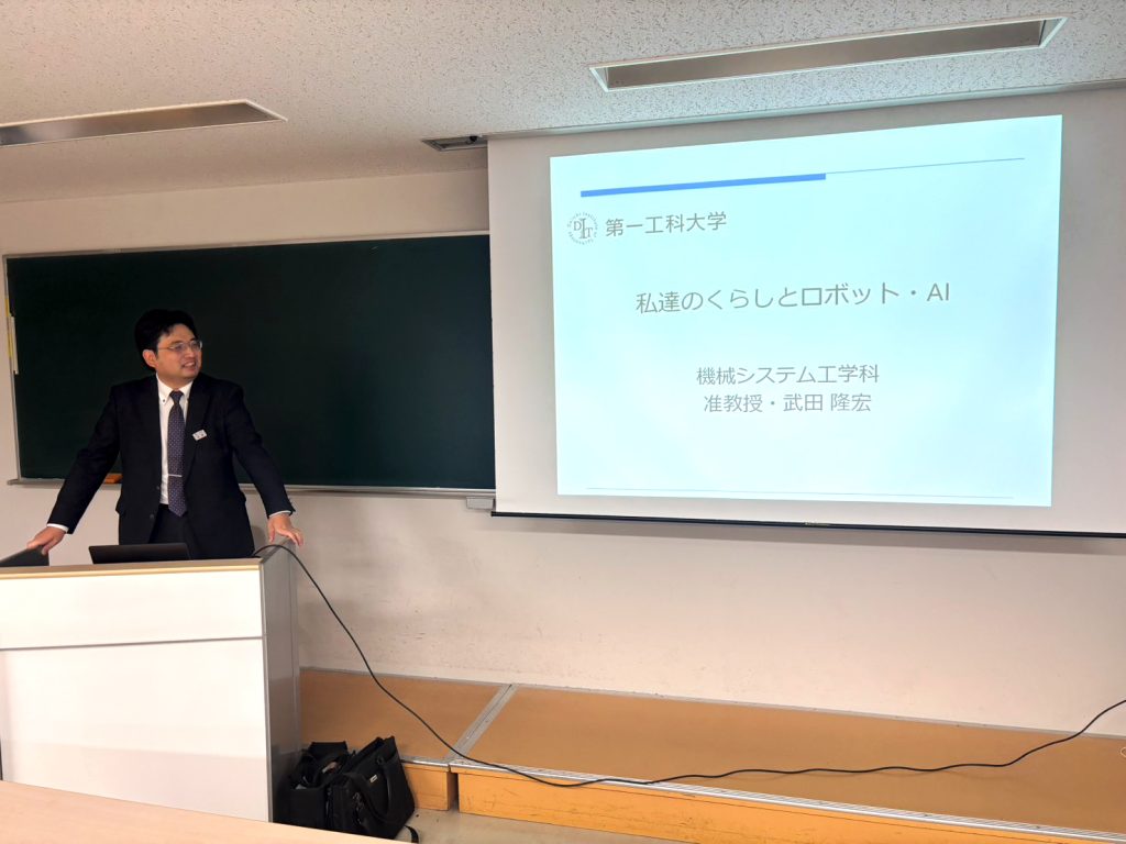 工学系として武田先生が「私達のくらしとロボット・AI」、情報系として竹下先生が「AIとこれからの社会」というテーマで講演を行いました。