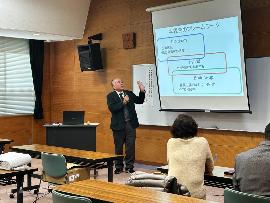当日はこの冬一番の寒気団の影響で朝から雪が舞う天候に加えて、究極決まった衆議院選挙が執り行われる中での開催でしたが、地区住民団体の方々に加えて、持続可能なまちづくりに興味を持つ参加者からの質問などもあり、熱気ある聴講が行われました。