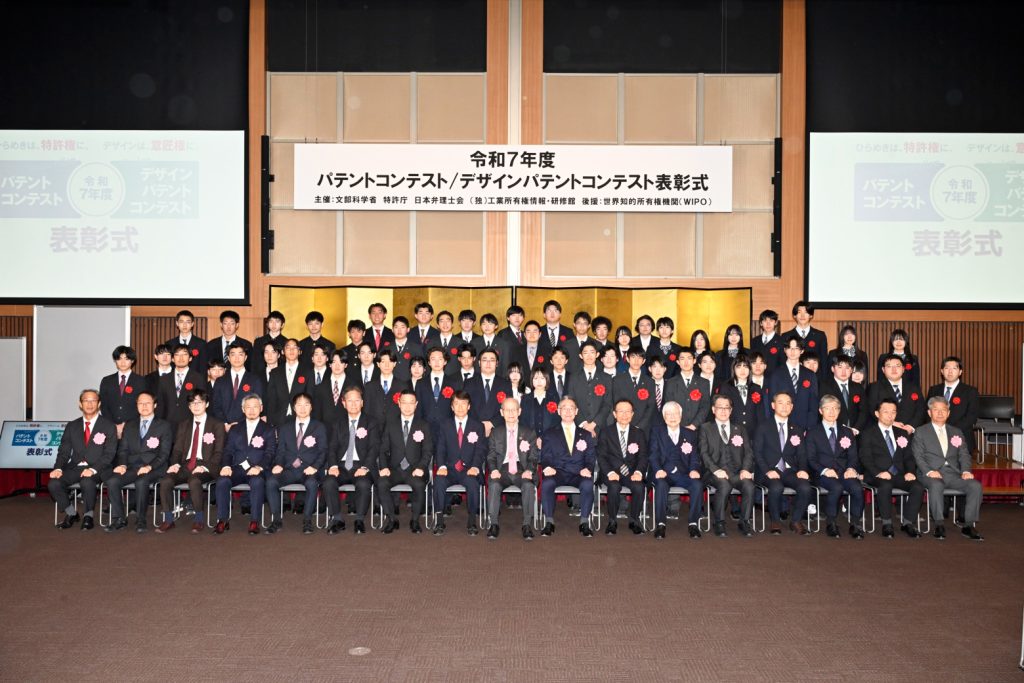 3月16日(月)、令和7年度「パテントコンテスト表彰式」(特許庁・文部科学省・日本弁理士会・独立行政法人工業所有権情報・研修館 主催)が、東京JPタワーホール&カンファレンスにて開催されました。